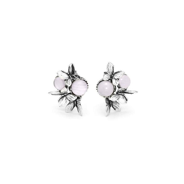 Piccole sculture come gioielli volanti. Un elegante connubio fra l'argento brunito e le delicate nuance rosa delle pietre cabochon danno vita agli orecchini Butterfly. Luce, colore e leggerezza.