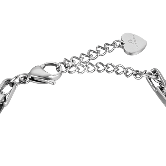 The steel bracelet with different links and chains with a matching design is a very modern and trendy jewel. It is a simple accessory with plates and details made with black enamel that give character to the style. The jewel features a pendant with an infinity symbol studded with bright white crystals that give class and elegance to a jewel designed for everyday life. The accessory is a precious gift idea suitable for any occasion.