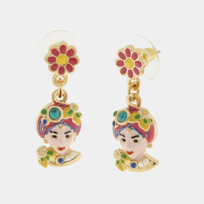 Orecchini in Metallo con Testa di Moro rosa e fiore