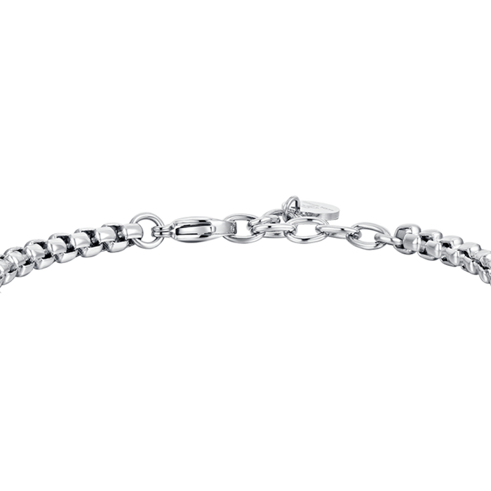 Bracciale Uomo in acciaio con elementi in ceramica nera. Lunghezza 19+3 cm. Spessore catena: 4 mm. Misura elemento: 15 x 5 mm.