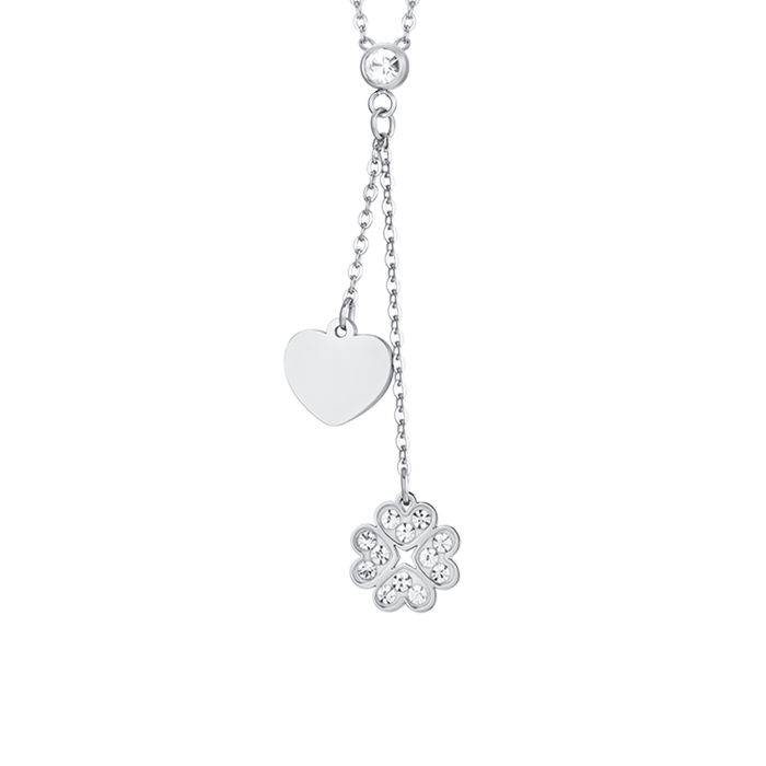 COLLANA DONNA IN ACCIAIO QUADRIFOGLIO E CUORE