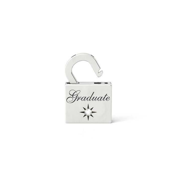 I lucchetti Forever si chiudono una volta sola e per sempre.Celebra il tuo “Forever”, rimuovi lo stopper di sicurezza e chiudi una volta e per sempre il prezioso lucchetto al tuo gioiello preferito.Lucchetto classico in argento Graduate, con diamante.• Incisione con brunitura• Retro ideale per incisioni di nomi, date, iniziali o numeri• Chiusura Forever• Dimensione del lucchetto: 10,5 x 14,5 x 3 mm• Carati del diamante: 0,01 ct.• Materiale: Argento 925, DiamantiOgni lucchetto della collezione "Forever" è contraddistinto dal marchio registrato "YN" che ne attesta l’originalità e l’autenticità.Tutti i lucchetti della collezione "Forever" sono coperti da domanda di brevetto per invenzione industriale e di design nell’Unione Europea.